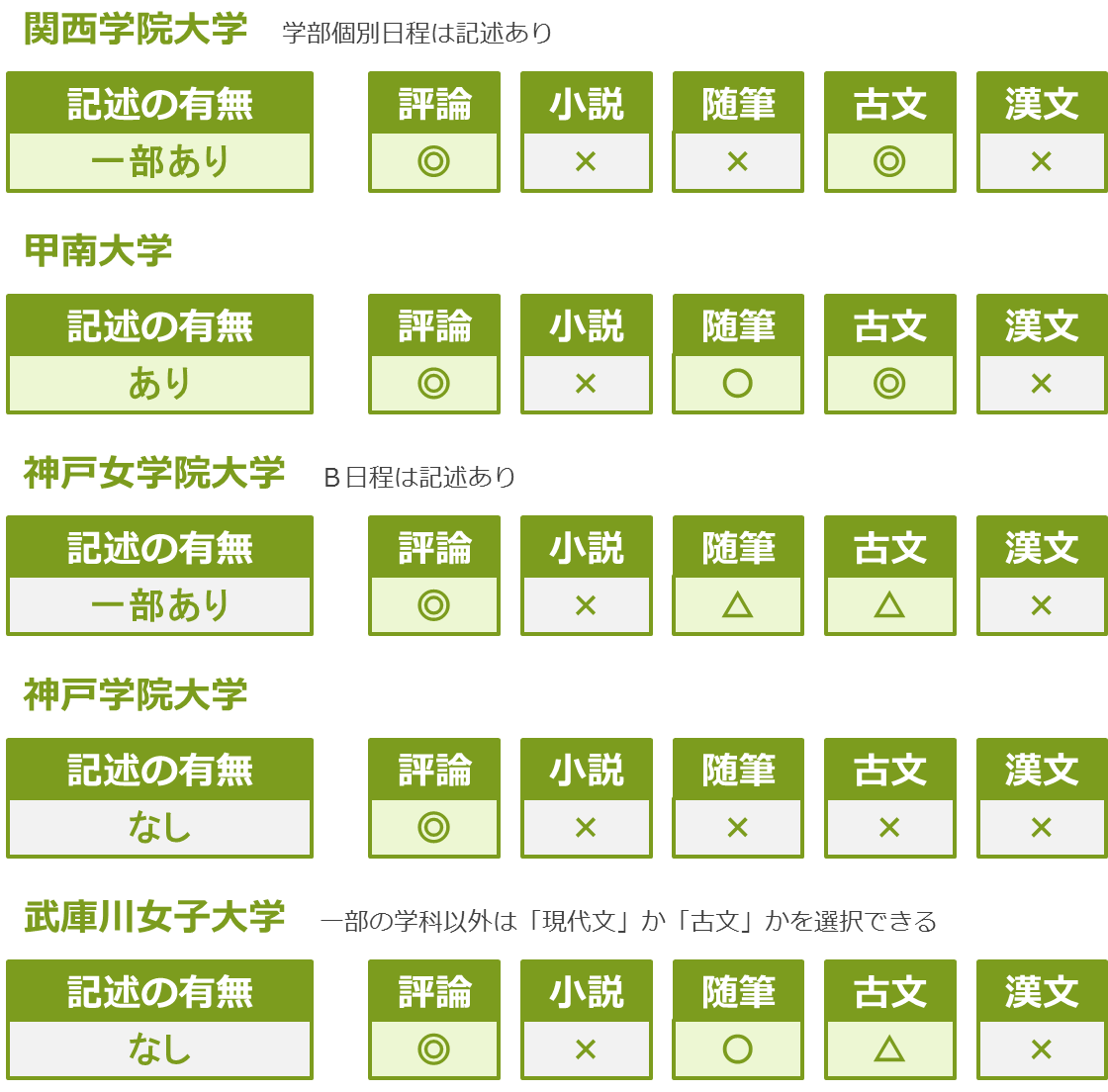 大学入試国語の出題傾向 記述問題 古文 漢文の有無が確認できます